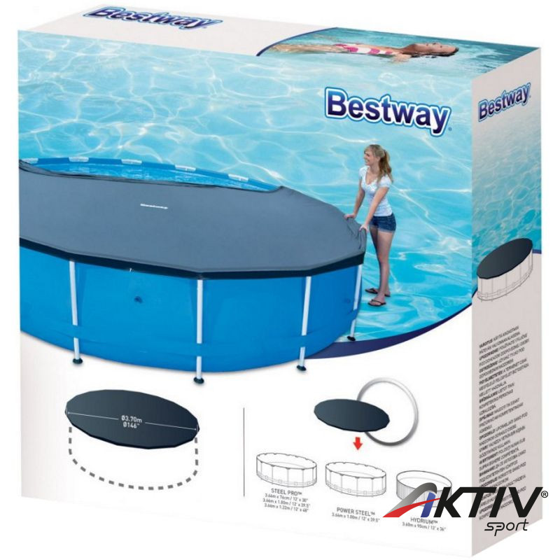 Bestway medence takaró szögletes, fémvázas 366 cm-es medencéhez. A medence takaró védi a medence vízét a külső szennyeződésektől és kórokozóktól. Használatával az éjszaka folyamán nem hűl ki a medence vize, napközben meg jobban felmelegszik.
