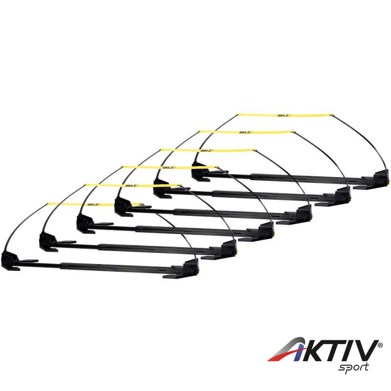 A Speed Hurdle Pro mini gát szett 6 db sportakadályból áll, melyek különböző edzésfajtákhoz, bemelegítéshez, mozgáskoordináció fejlesztéséhez, vagy akár erőnléti edzésekhez használhatók. Innovatív, tartós kialakítása minden lábmérethez megfelelő. Három féle méretre szabható, 6, 9 és 12 hüvelyk magasságra (15,24 cm, 22,86 cm, 30,48 cm), ezért akár gyerekek számára is alkalmas. A szerkezet visszapattanó, rugalmas, így a ráesés következtében is nehezen törik.