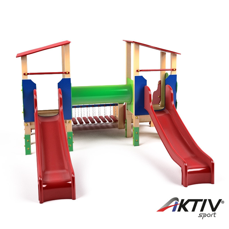 A két tornyot tartalmazó vár egymáshoz igény szerint kötélhíddal, láncos lépegetővel vagy zárt hengerrel csatlakoztatható. Mindhárom esetben a toronyba lépegetős rámpákon lehet feljutni, továbbhaladni a választott összekötőn lehet a másik toronyba, illetve a csúszdán lecsúszni. Mindkét tornyon azonos dobogómagasságban vannak elhelyezve a beülőkaros csúszdák. További érdekessége, hogy az egyik toronyból a másikba átjutni nem csak a talajon közvetlenül, hanem a rámpák között elhelyezett és azokhoz rögzített láncos lépegetőn is megközelíthető.