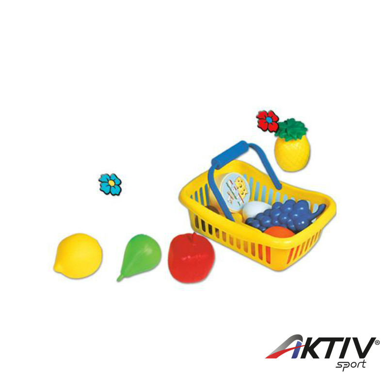 Műanyag játék gyümölcsök kosárban, az igazi bevásárlás élményért.