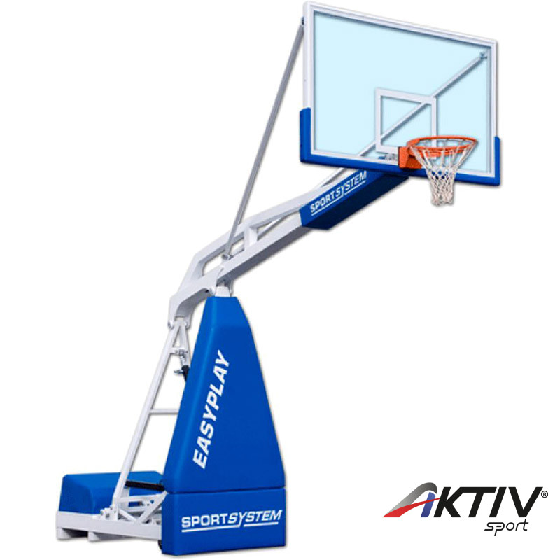 Easyplay Club mobil kosárlabda állvány szállítógörgőkkel. Rúgós működésű magasságállítás. A kosárállvány 225 cm benyúlású. A szett tartalmazza az üveg palánkot, a rugós kosárgyűrűt kosárlabda hálóval ill. a védőpajzsot is.