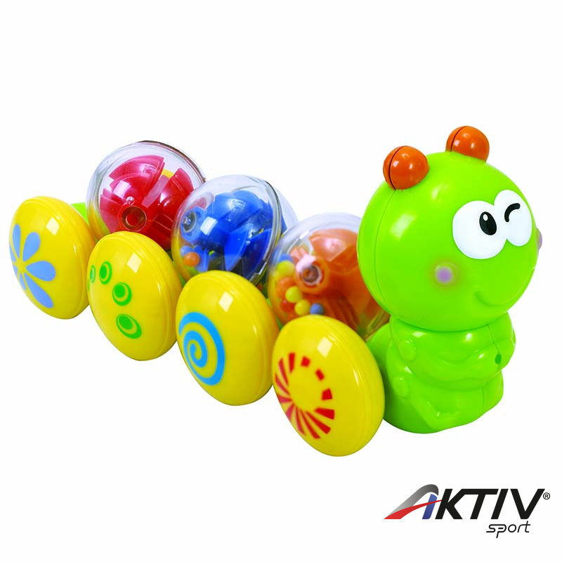 A csörgős labdák könnyedén eltávolíthatók a hernyóról így külön is használhatók.
