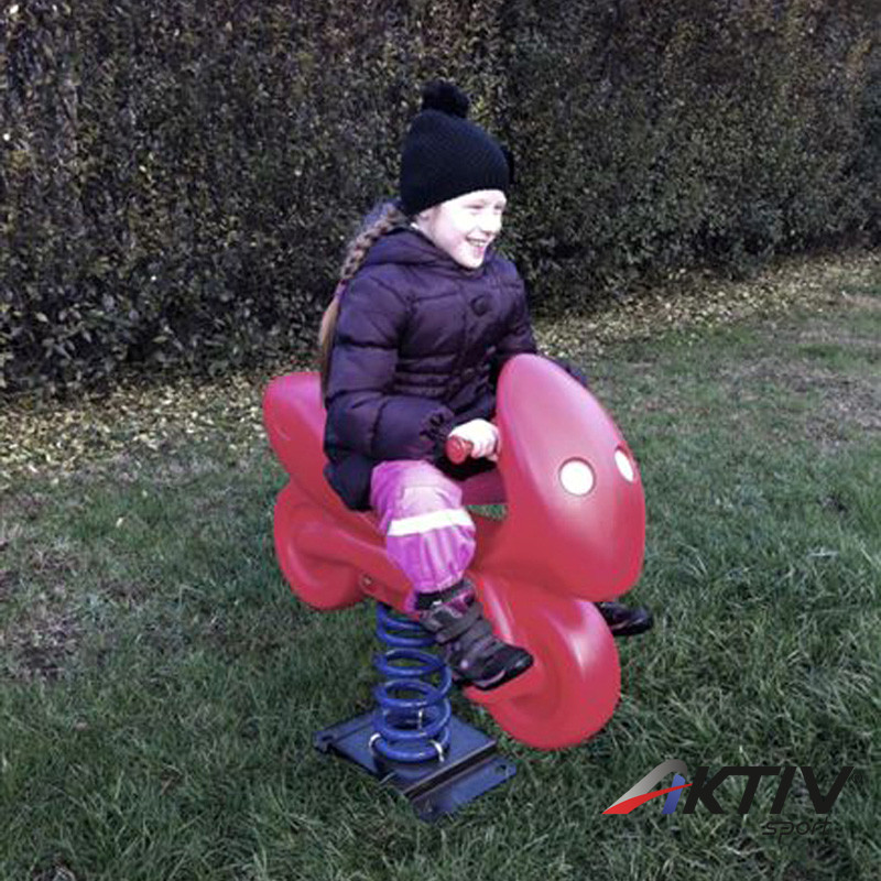 Közterületi célra ajánlott, erős igénybevételt és az időjárás viszontagságait is jól tűrő HDPE műanyagból készült figurás rugós játék. A játék megfelel az MSZ EN 1176-1, 1176-6 szabványoknak, és rendelkezik az ezt bizonyító Európai TÜV tanúsítvánnyal is.A játszótéri szabványnak megfelelően az esési térben ütéscsillapító felület kialakítása nem szükséges az alacsony esésmagasság miatt. Esési tér: 3 méter x 3 méter (9 m2).