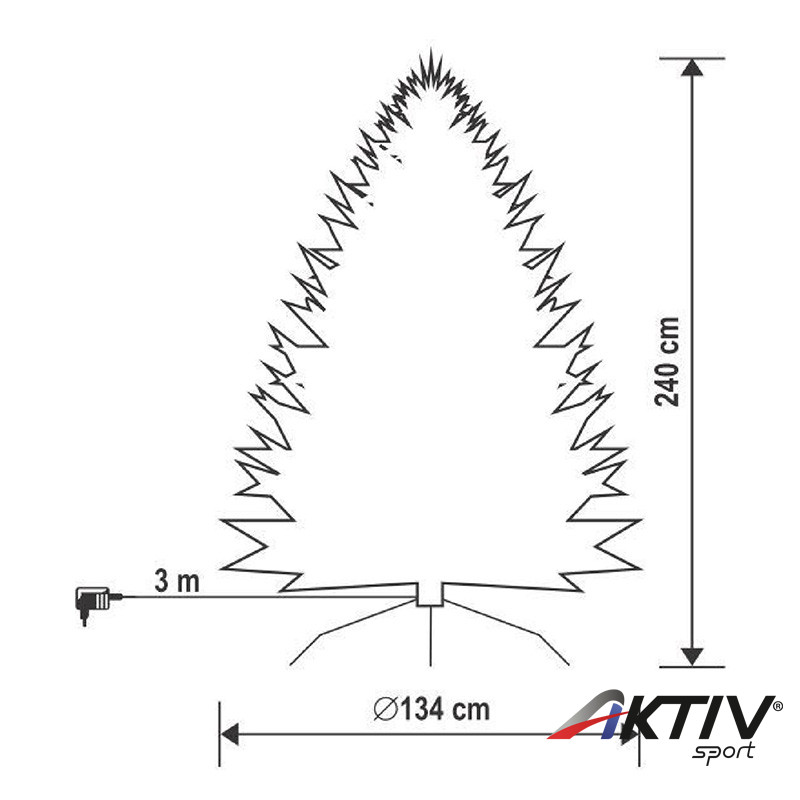 A termék 240 cm magas, ágai zsanérral csatlakoznak a törzshöz és fém talpa van.
