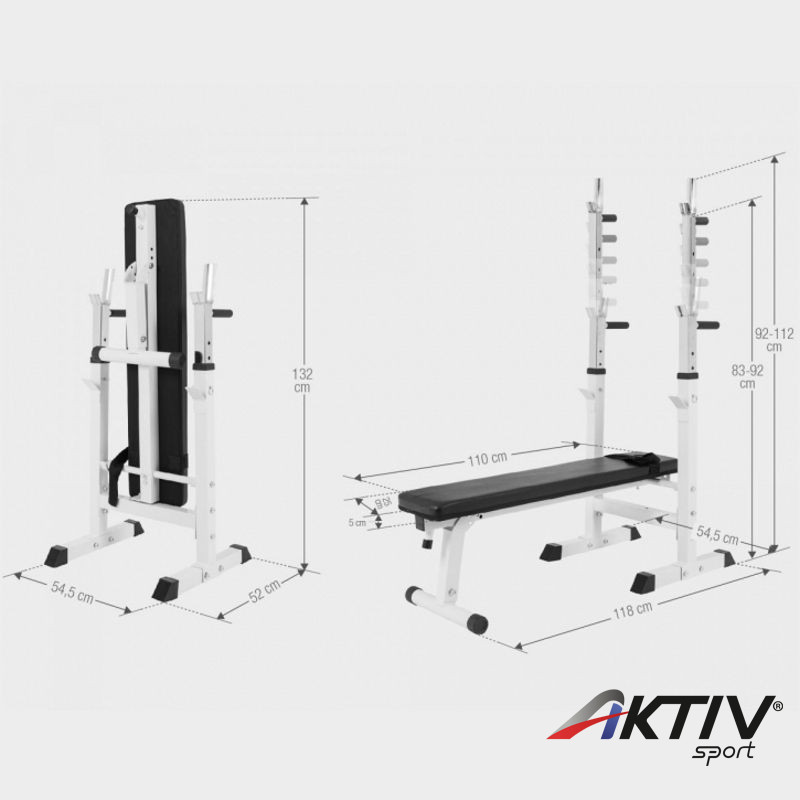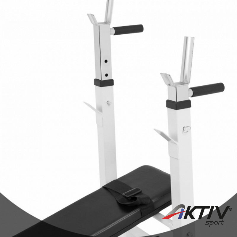 A súlytartó állvány szintén állítható 5 fokozatban, 92 és 112 cm között.