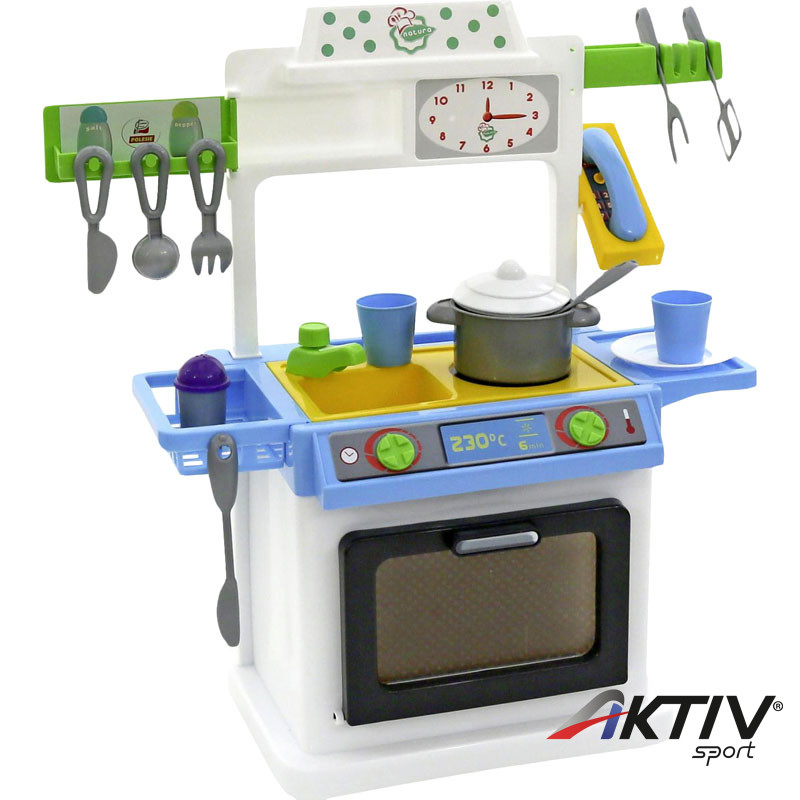 Polesie márkájú játékkonyha. Süsd, főzd meg kedvenc ételeid játékkonyhádban, úgy mint a nagyok! A szett mindent tartalmaz, amire egy leendő szakácsnak szüksége lehet. Tervezd meg menüdet, főzd vagy süsd meg a fazékban, fogyaszd el tányéroddal és evőeszközeiddel, majd mosogasd el azokat!