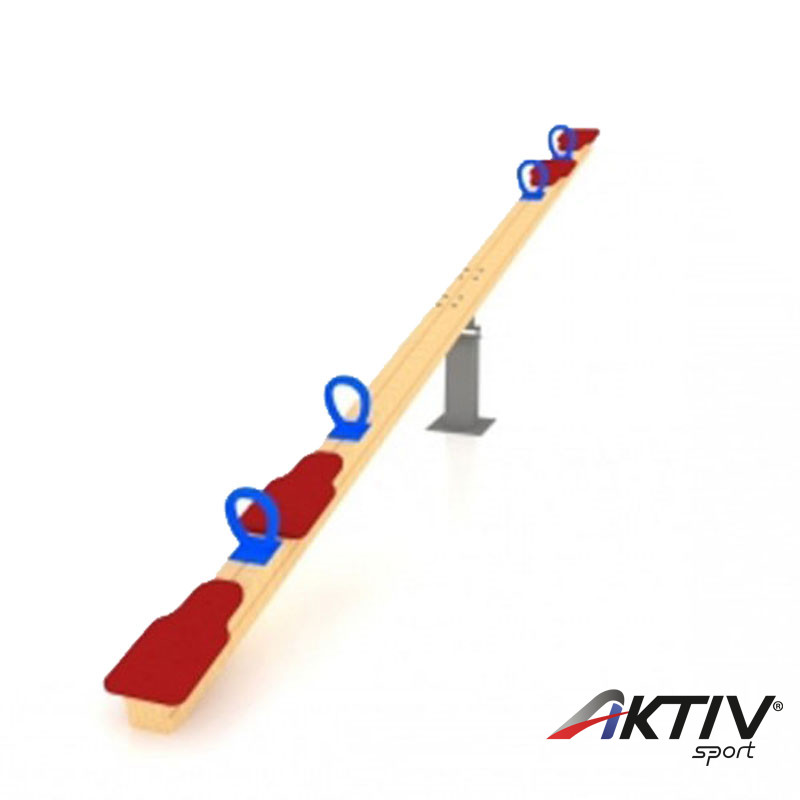 Egy praktikus játszótéri játék, melyet olyan helyekre ajánlunk ahol sok gyerek játszik egyszerre és költségtakarékosan, kis helyigénnyel szeretnék megoldani a mérleghintázást. Nem elhanyagolható szempont ennek az eszköznek a kiválasztásánál az is, hogy sokkal nagyobb játékélményt nyújt a gyerekeknek ha egyszerre négyen is tudnak biztonságosan mérleghintázni. Ha csak két gyerek akar játszani és nagyobb a súlykülönbség közöttük akkor is jó választás ez a játékszer. A tervezésnél kerültük a felesleges elemek használatát, így a modern stílusú játszótér képébe is illeszkedik, telepítése könnyen és olcsón megoldható. Közterületi játszóterekre, óvodákba, bölcsődékbe, iskolákba egyaránt ajánljuk már 1 éves kortól. A játék megfelel az MSZ EN 1176-1 és 1176-6 szabványoknak, és rendelkezik az ezt bizonyító TÜV tanúsítvánnyal is.