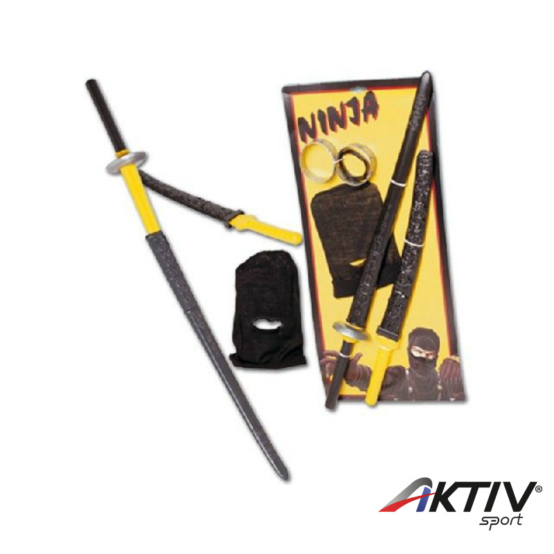 A készlet tartalma: 1 db 80 cm-s és 1 db 60 cm-s ninja kard tokkal, 1 pár műanyag "szegecses" karkötő, 1 db fejmaszk.