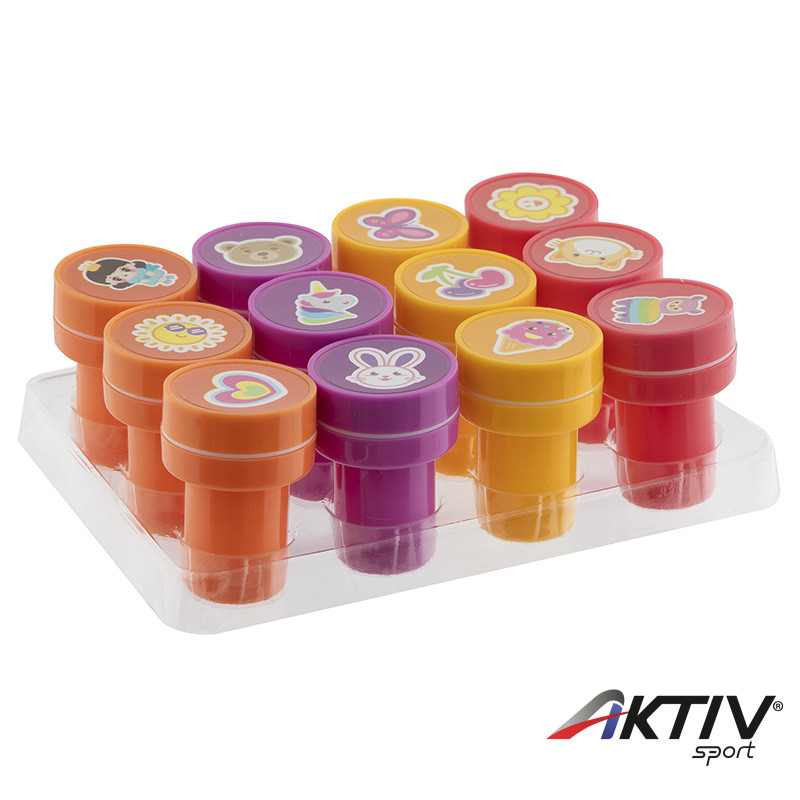 A készlet 12 különböző mintájú nyomdát és egy tintapárnát tartalmaz, így azonnal használatra kész.