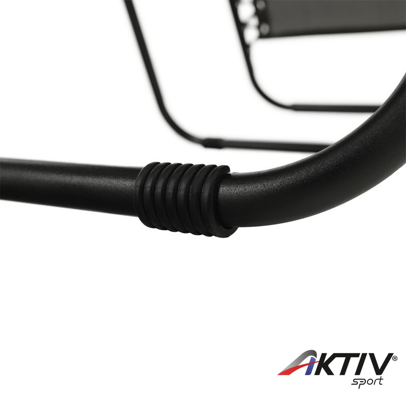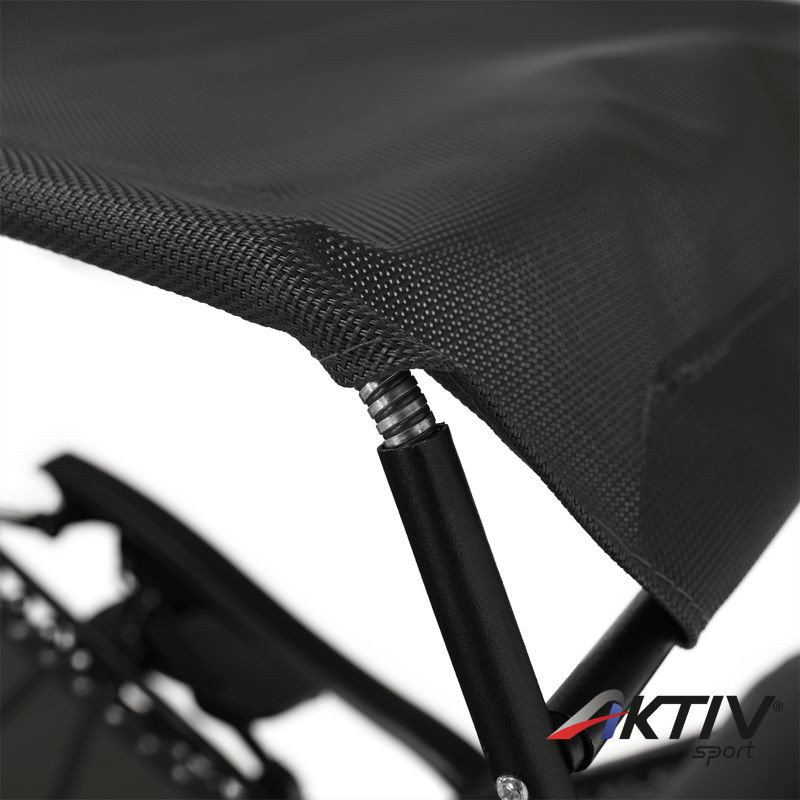 Az acél szerkezet biztosítja a stabilitást, a szürke háló pedig tökéletesen alkalmazkodik a test íveihez.
