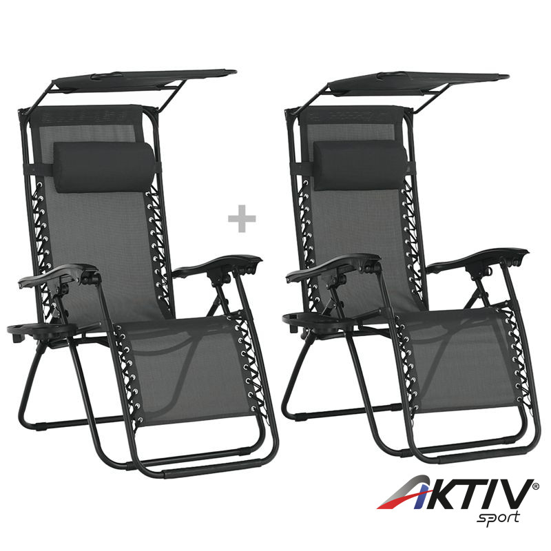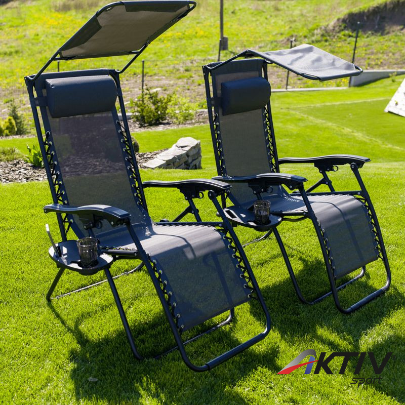 A székek párnát is kínálnak a fej területén és árnyékolót, amely jól jön majd az erős napsütésben. A párna pántokkal van ellátva, így a magasságához igazíthatja.