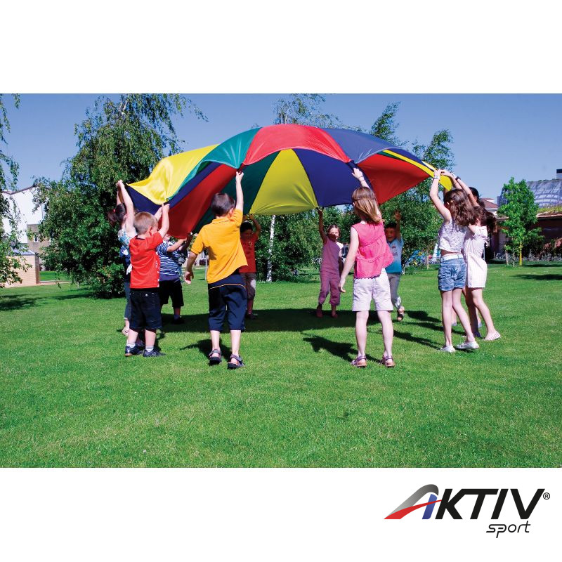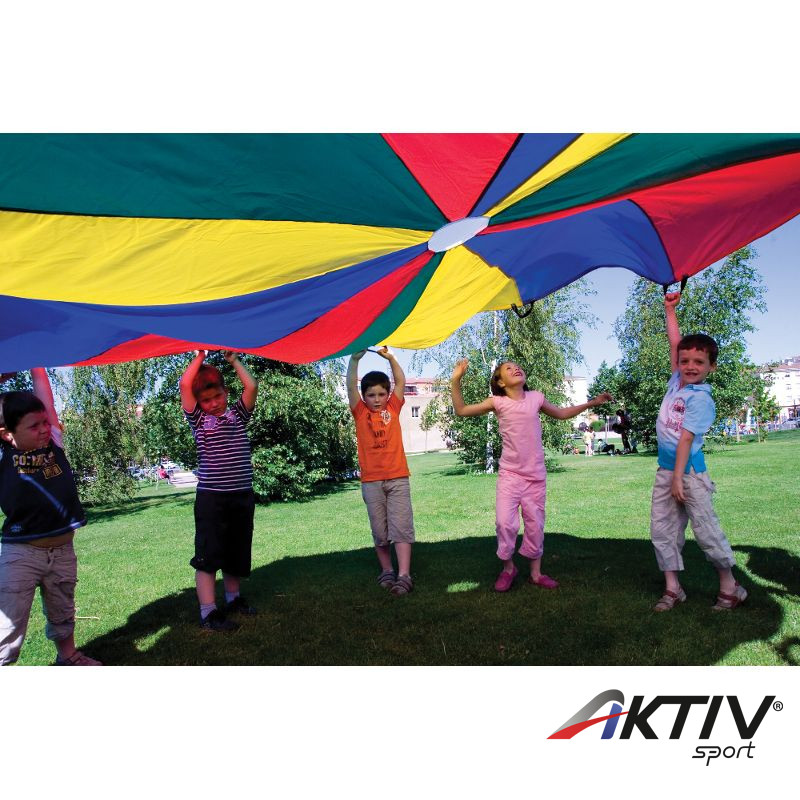 Kiváló minõségû nylon ejtõernyõ nagyteljesítményû fogantyúval. A hagyományos modell négy színû panelbõl áll (zöld, sárga, piros, kék). Elõsegíti kisebb csoportok koordinációját.