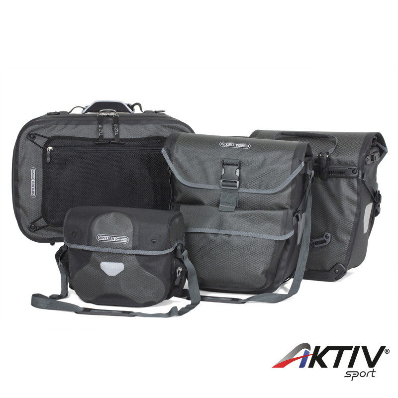 Az Ortlieb kerékpár táska utazó szett adapterrel ellátva tartalmaz egy Ortlieb adapterrel ellátott csomagtartóra szerelhető bőröndöt, egy pár csomagtartóra szerelhető táskát, és egy Ultimate 6 plus kormányra szerelhető táskát.
