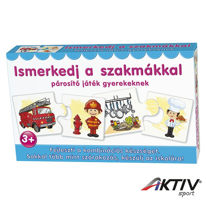 A párosító oktató játék szórakozás közben a gyerekek készségeit is fejleszti. Az „Ismerkedj a szakmákkal” játékban a különböző szakmák munkaruháit viselő figurákat kell párosítani az általuk végzett szakma jelképével. Például a tűzoltót tűzoltóautóval, szakácsot a konyhával. A feladat megoldása a kombinációs készséget erősíti, mely az iskolára remek előkészítő.