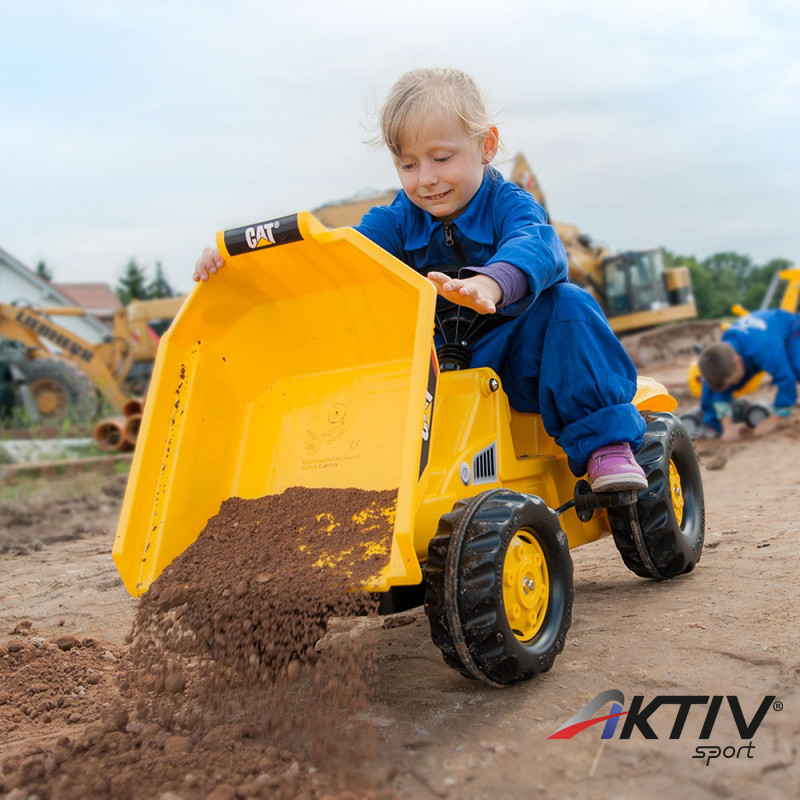 Kiváló minőségű, Rolly Kid CAT márkájú pedálos dömper. A rakodórész billenthető. A láncszerkezet rejtett, így a dömper még biztonságosabb. A dömper mérete 93x44x52 cm, súlya 6,6 kg. 2 és fél éves kortól 5 éves korig ajánljuk. A Rolly Toys, 3 év gyártói garanciát vállal a termékre.