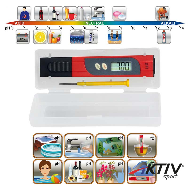 Többek között ideális úszómedence, pezsgőfürdő, akvárium, halastó, csapvíz, ásványvíz, gyümölcslé, bor, pálinkafőzés, kávé, tea, öntözővíz stb. PH értékének a jelzésére.