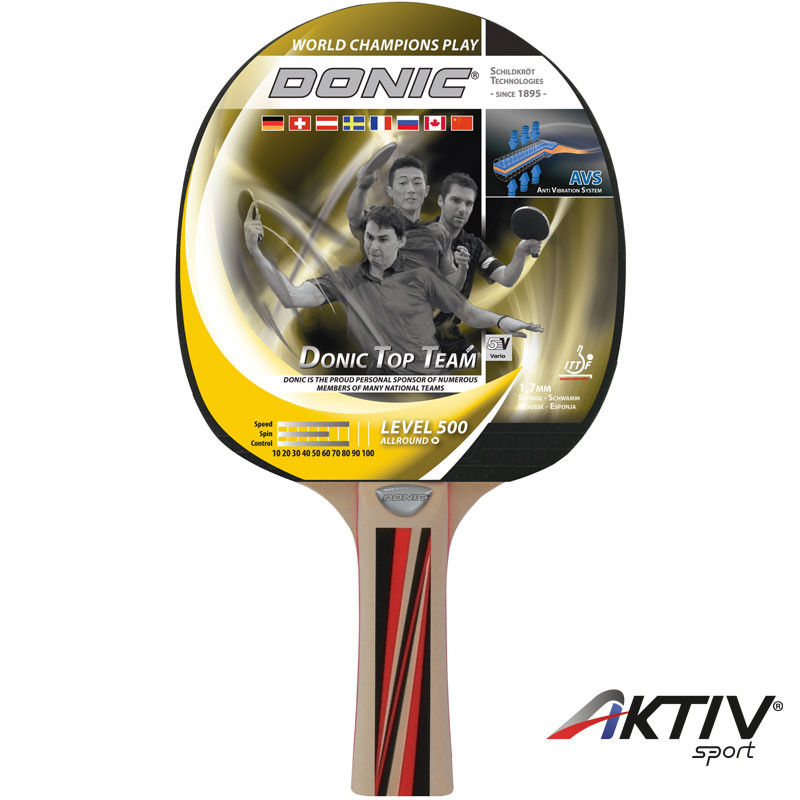 Olyan nemzeti válogatott játékosokat mint Li Ping (Kína), Kirill Skachkov (Oroszország), vagy Barce Olivier (Franciaország) támogat a Donic Ezeknek a játékosnak készült a Top Team széria amely el van látva többek közt rezgéscsillapítóval, ergonomikus nyéllel és erősítő rendszerrel (PLS)