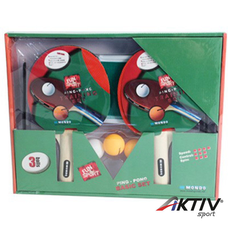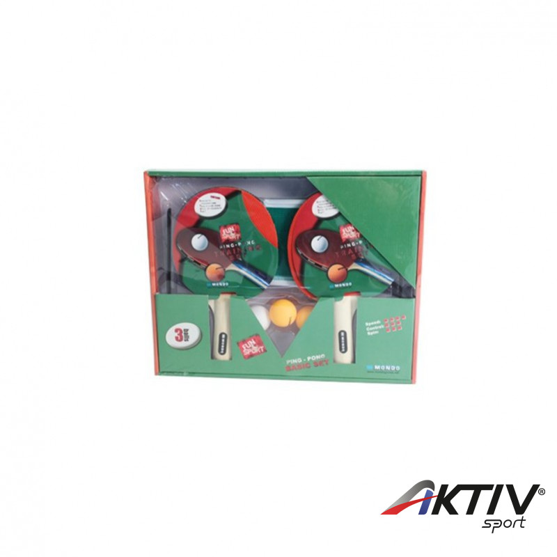 A készlet tartalma: 2 db szemcsés pingpongütõ, 3 db pingponglabda, hálótartó vas hálóval.