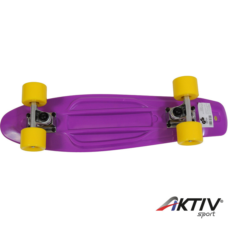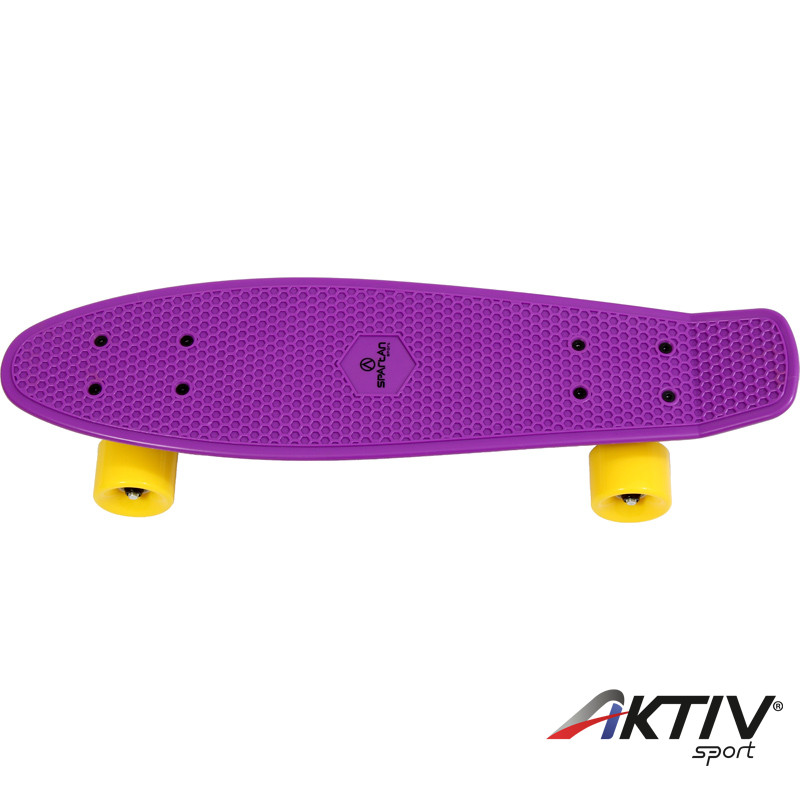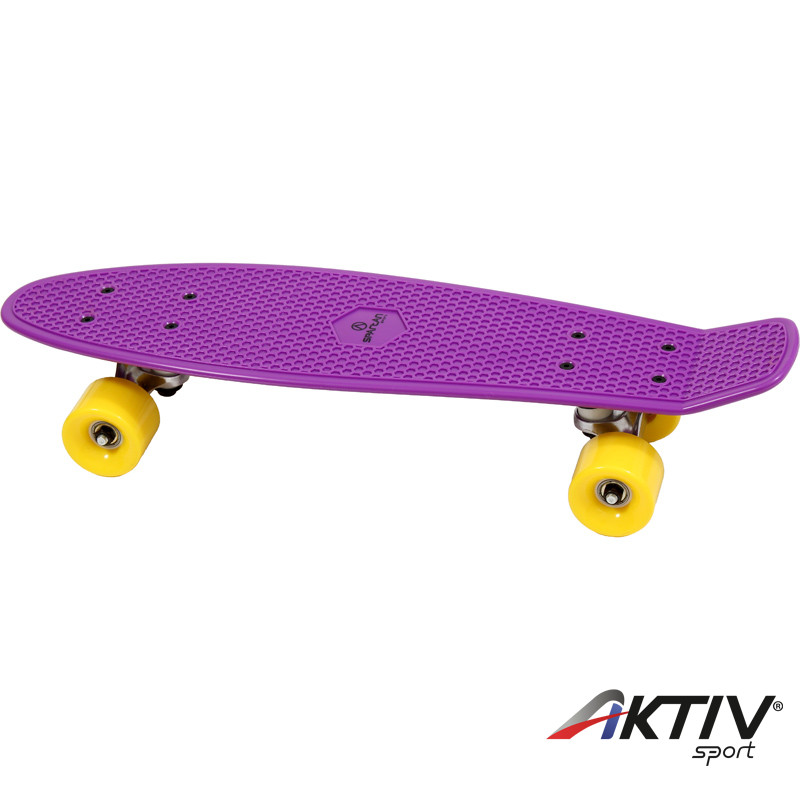 Műanyagból készült lila színű gördeszka. A gördeszka méretei 62,5 cm x 15 cm. A műanyag gördeszka tökéletes választás minden fiatal kezdő gördeszkásnak. A gördeszka minőségi keményített PVC-ből készült, ellenálló öntvény alvázzal. A deszka kényelmes használatáról az erős és könnyű  alváz, ill. a minőségi, ABEC 7 Carbon csapágyak gondoskodnak.. Maximális terhelhetősége 60 kg, ezért elsősorban gyerekeknek, és junioroknak ajánlott. Igen népszerű deszka, több színben is kapható!