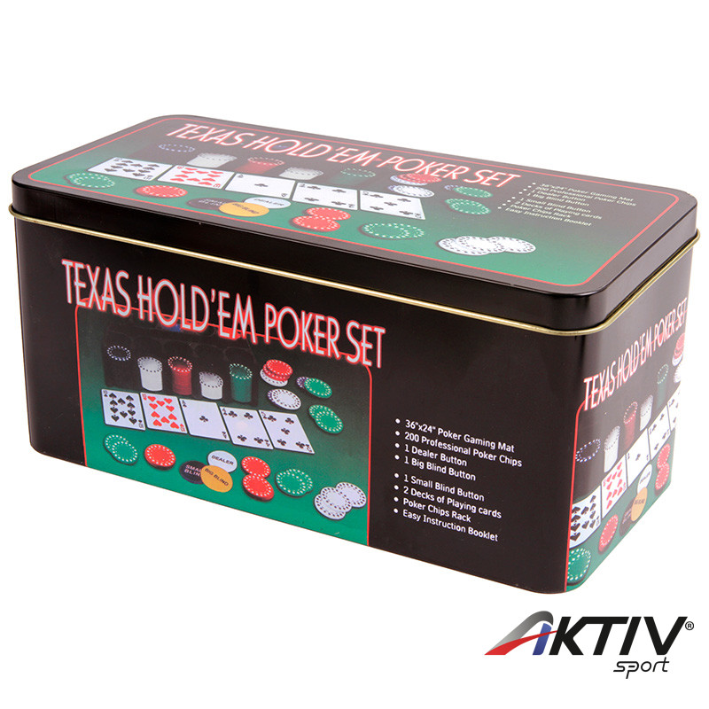 A Póker készlet fémdobozban 200 darab zsetonnal a szenvedélyes kártyajátékosok számára készült, minden kiegészítővel, ami egy izgalmas kártyapartihoz szükséges. A dobozban egy 92 x 60 cm-es zöld posztót, 200 darab profi zsetont, 2 pakli kártyát, zsetontartót, osztó, kicsi vak és nagy vak gombot is találtok, a készlettel a Texas Hold Em, és más pókerváltozatok is játszhatók.