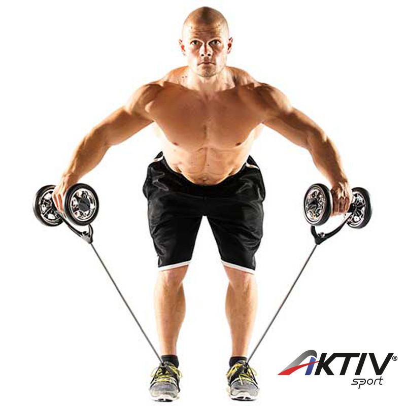 A Power Wheelz olyan fitnesz eszköz, amely ötvözi az erősítő kereket és a gumikötelet, így dinamikus, többdimenziós edzésmozgásokat végezhető vele. Az erőkifejtési mozgások mind az álló, mind a vízszintes helyzetben végrehajthatóak.