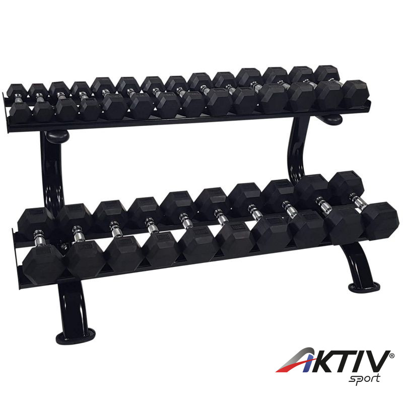 A Tunturi professzionális egykezes 2-soros súlyzótartó állvány tökéletes megoldást kínál a szabadidős edzéshez szükséges bármelyik egykezes súlyzó tárolásához. Az állvány maximális terhelhetősége akár 200 kg is lehet.