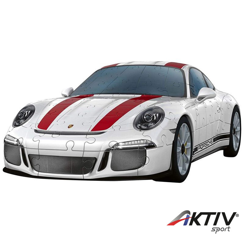 A Porsche 911 R 108 darabos 3D puzzle egy fehér színű, piros csíkokkal díszített német luxusautó, puzzle elemekből. A mozaikdarabokat ragasztó nélkül lehet egymáshoz illeszteni, a darabok hátoldalán sorszámot és nyilat is találsz hogy tudd, hova kell tenni a következő darabot.