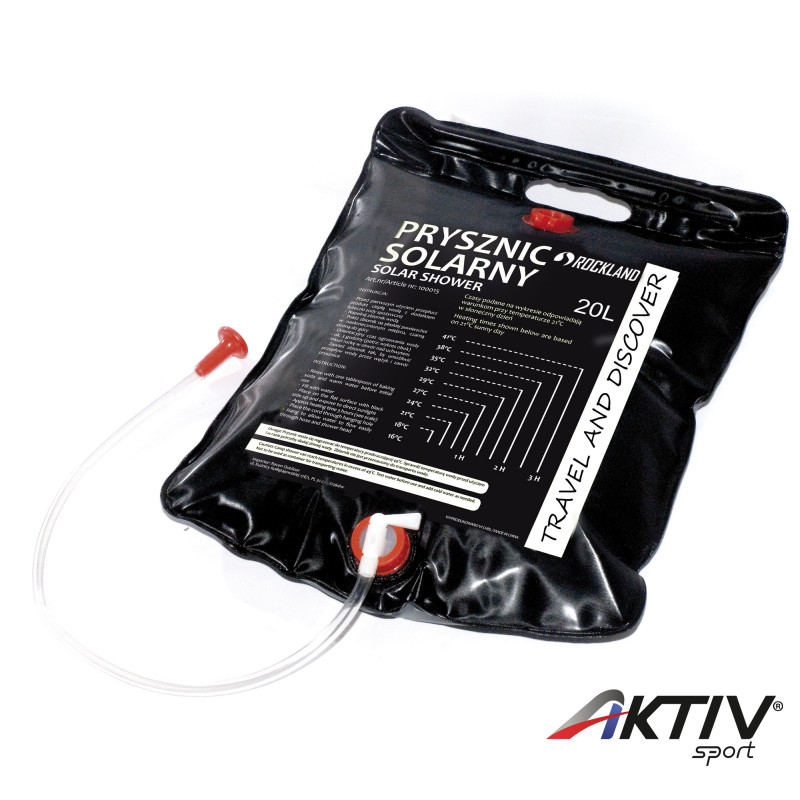 Könnyen használható 20 literes tábori zuhanyzó zárószeleppel, tusolófejjel. Napon pár óra alatt felmelegszik benne a víz a fekete tartálynak köszönhetően.