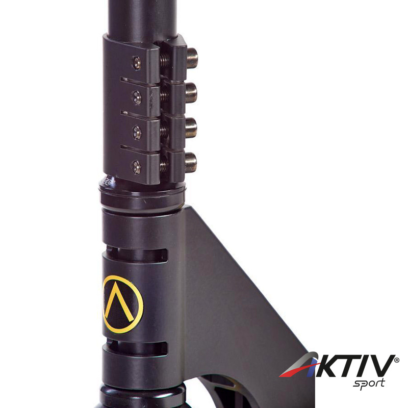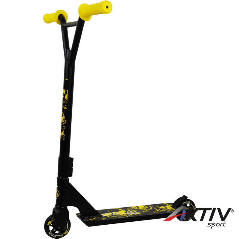 Repülőgépeknél használatos alumíniumból készült deszka és cső. A deszka mérete: 48 x 10,8 cm. ABEC9 csapágyak alumínium abronccsal. A kormány kényelmes markolattal van ellátva. Minőségi roller, amelyet már trükkökhöz, mutatványokhoz is használhatsz!  Robusztos vázszerkezet, mégis könnyen kezelhető roller. BMX stílusú kormánnyal felszerelve.