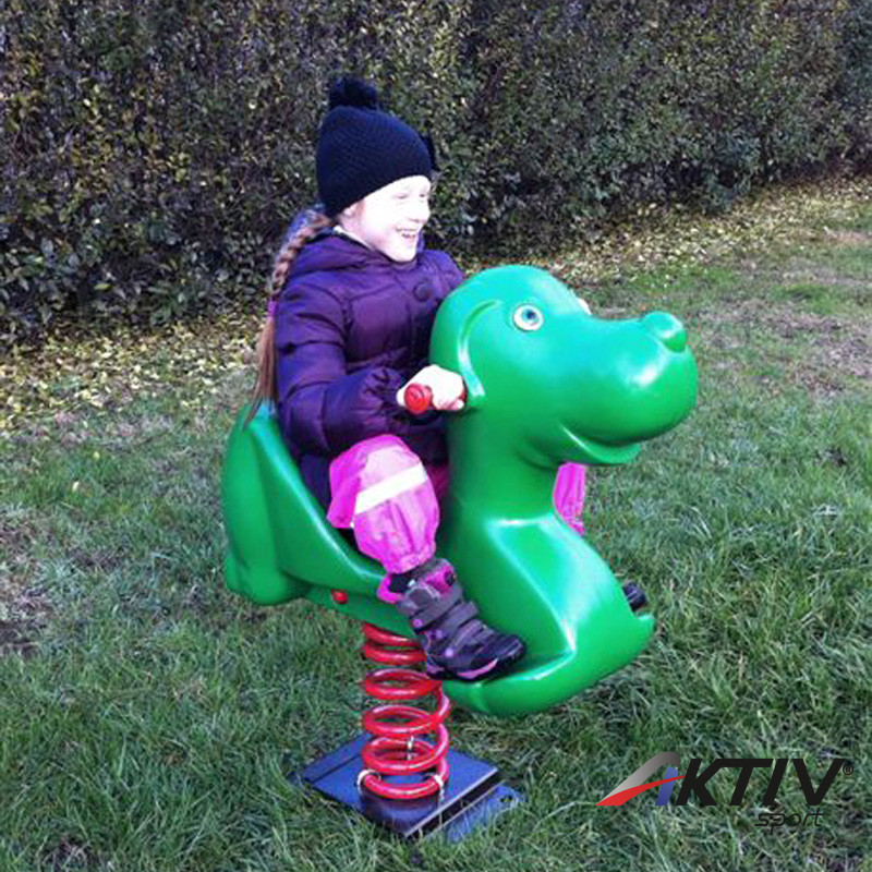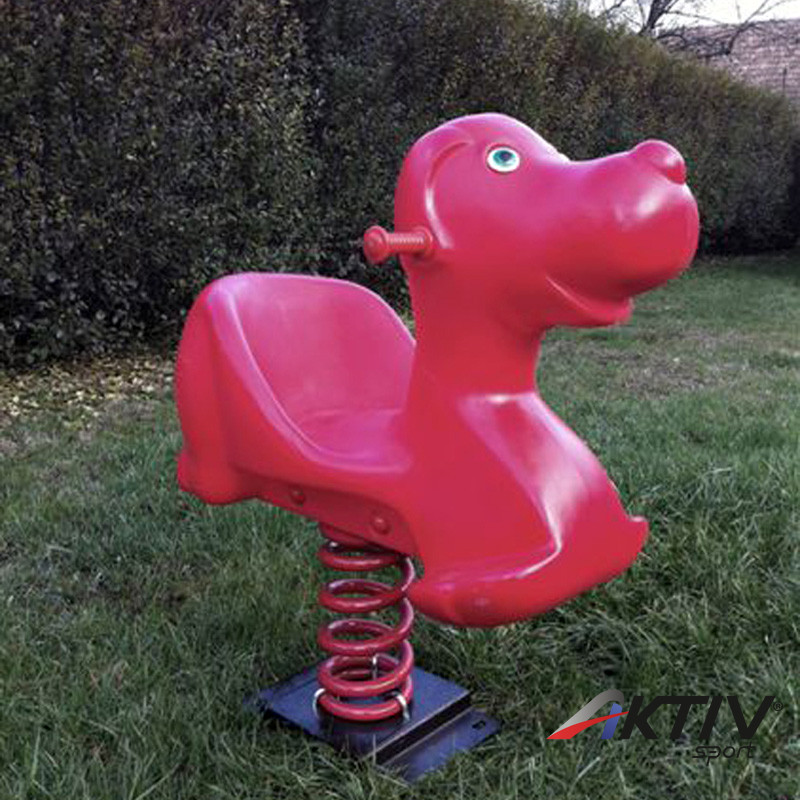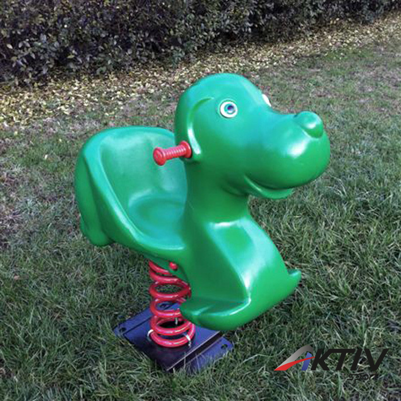 Közterületi célra ajánlott, erős igénybevételt és az időjárás viszontagságait is jól tűrő LDPE műanyagból készült figurás rugós játék. A játék megfelel az MSZ EN 1176-1, 1176-6 szabványoknak, és rendelkezik az ezt bizonyító Európai TÜV tanúsítvánnyal is.A játszótéri szabványnak megfelelően az esési térben ütéscsillapító felület kialakítása nem szükséges az alacsony esésmagasság miatt. Esési tér: 3 méter x 3 méter (9 m2).