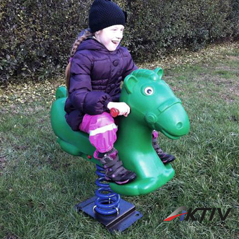 Közterületi célra ajánlott, erős igénybevételt és az időjárás viszontagságait is jól tűrő LDPE műanyagból készült figurás rugós játék. A játék megfelel az MSZ EN 1176-1, 1176-6 szabványoknak, és rendelkezik az ezt bizonyító Európai TÜV tanúsítvánnyal is.A játszótéri szabványnak megfelelően az esési térben ütéscsillapító felület kialakítása nem szükséges az alacsony esésmagasság miatt. Esési tér: 3 méter x 3 méter (9 m2).