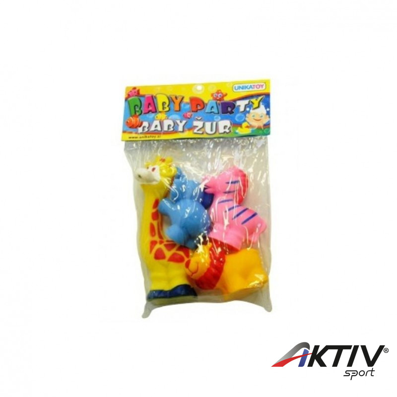 Összenyomásra csipogó, sípoló hangot kiadó színes, medencében, kádban stb. használatos játékok. Színes, vidám állatkák biztonságos, ftalátmentes puha műanyagból. Az esti fürdõzések, és kerti pancsolások kedves kiegészítõje.