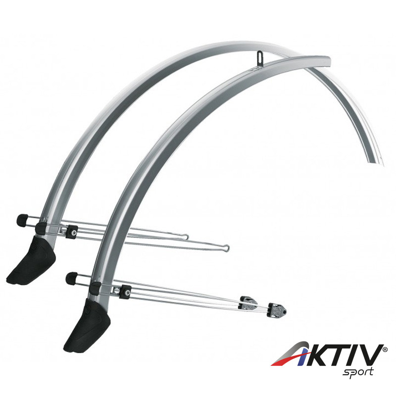 Könnyű, tartós műanyag sárvédő szettek 3 mm-es rozsdamentes acél pálcákkal. Secu-Clip az első pálcákon, amely egy ügyes megoldás a biztonságodért: a kerék által felkapott idegen tárgyak a gumi és a sárvédő közé szorulva blokkolhatják az első kereket. A Secu-Clip ilyenkor kiold, majd gond nélkül visszacsatolható.