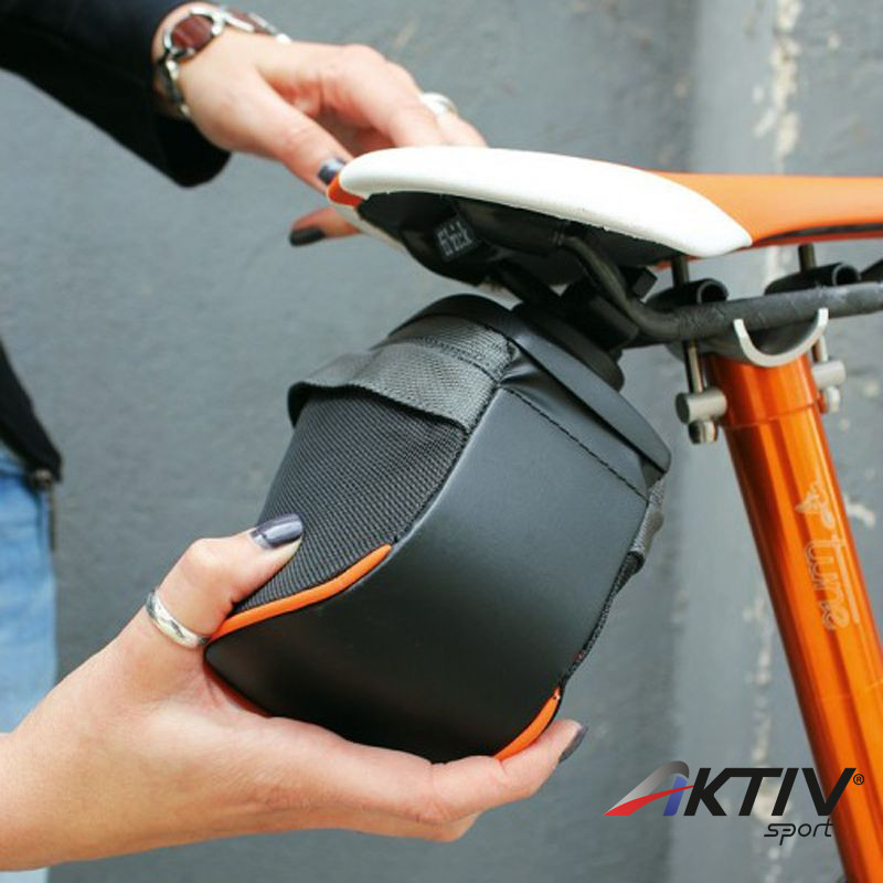 Szerszám nélkül a nyeregpálcára csatolható. Fényvisszaverő csíkkal, vízálló anyagból készült táska. Méret: S (0,8 l)