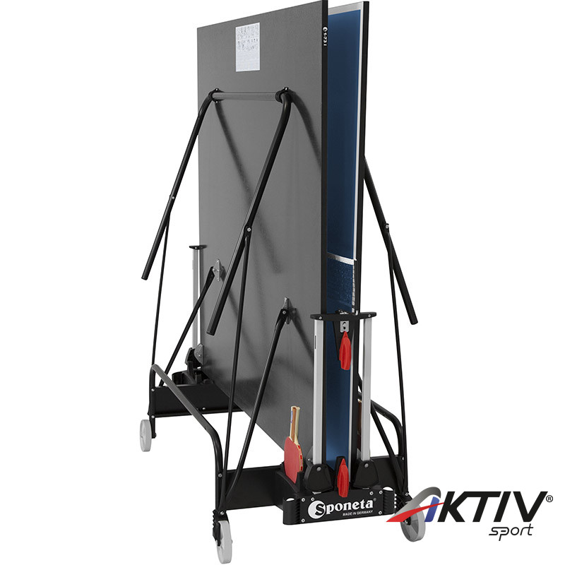 A pingpongasztal 1 db ütő- és labdatartót és 1 db Sponeta Club pingpongháló szettett is tartalmaz!