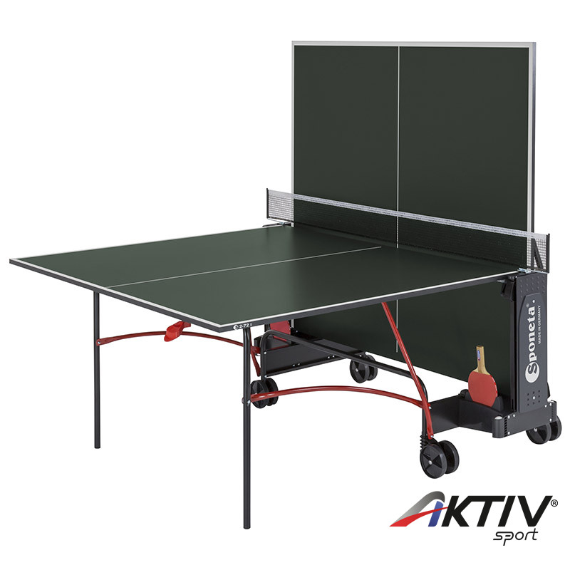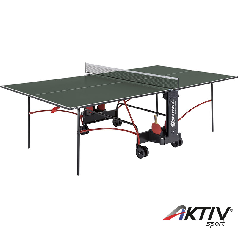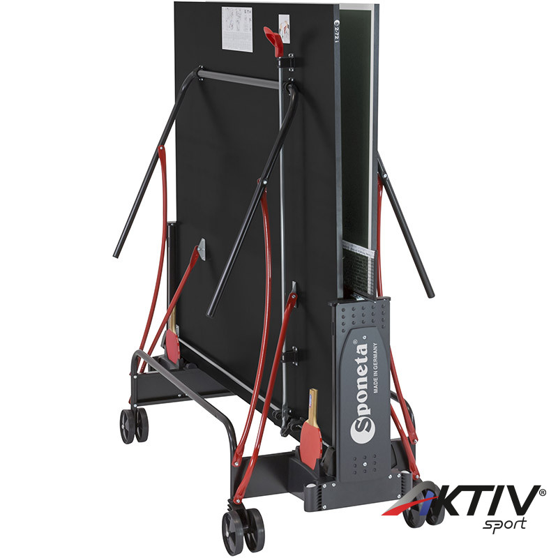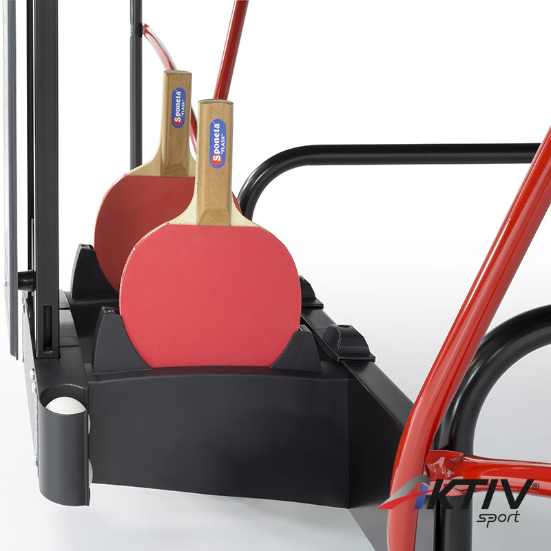 A pingpongasztal 1 db ütő- és labdatartót és 1 db Sponeta Club pingpongháló szettett is tartalmaz!