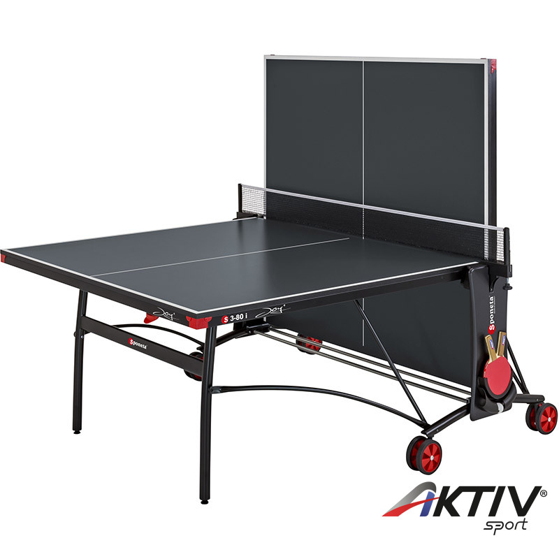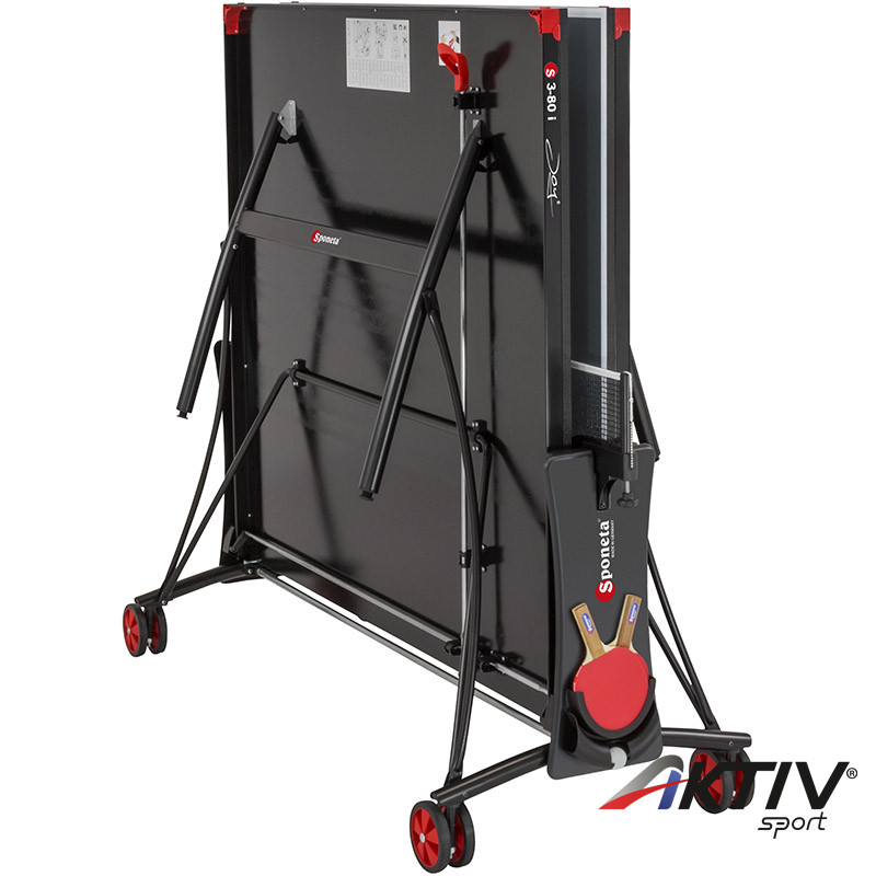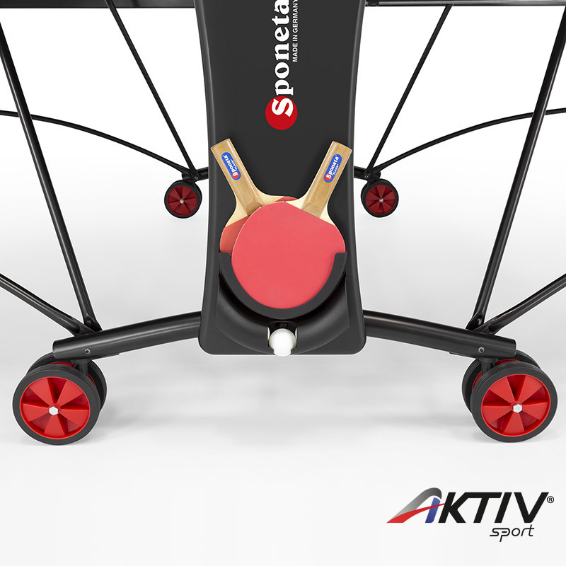 A pingpongasztal 1 db ütő- és labdatartót és 1 db Sponeta Primus I pingpongháló szettett is tartalmaz!