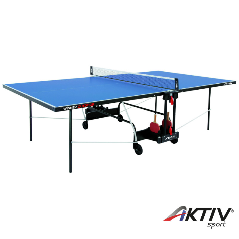 A Stiga Winner Outdoor kültéri pingpongasztal hálóval, ütő- és labdatartóval, tökéletes szabadtéri asztal a hobbi és a szabadidős játékra.