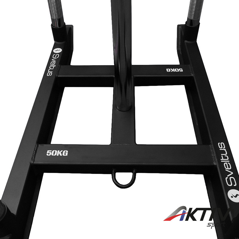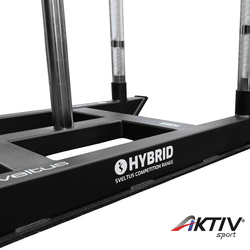 A Sveltus Hybrid Competition termékcsaládba tartozó Power Sled egy rendkívül masszív gyorsasági szán, amelyet a legigényesebb sportolók és hibrid versenyek számára terveztek. Üresen 50 kg-os súlyával stabil alapot biztosít a nagy terheléssel végzett edzésekhez (max. 500 kg), miközben kiváló stabilitást garantál.
