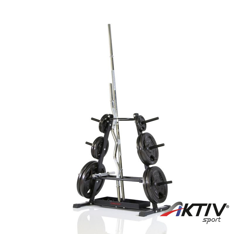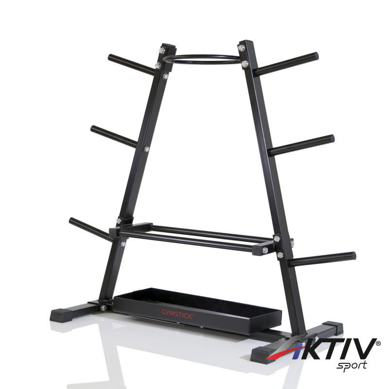Otthoni edzésre, vagy üzletek kirakataiba egyaránt praktikus a Gymstick súlytárcsa tároló, mely a súlyok és rudak rendeltetésszerű tárolásáért felel. Az egyszerű, de tartós, minőségi szerkezet acélból készült, hogy megfelelően elbírja a ránehezedő súlyt. A tároló külső állványai a súlytárcsák tartását, súlyonként osztályozását biztosítja, megkönnyíti azok elhelyezését. Belső része a rudakat biztonságosan tartja. Az állvány alja csúszásgátló gumival van ellátva. A tároló ésszerű kialakítása helykímélő, megléte a sportkellékek elhelyezése mellett a rend fenttartása szempontjából is előnyös.
