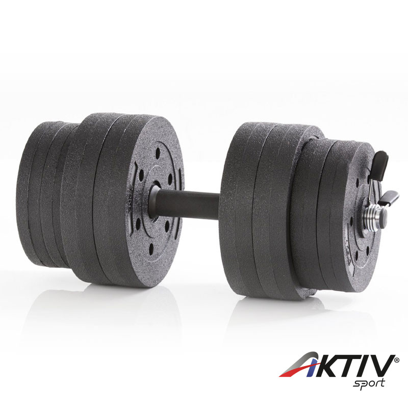Gymstick Active 15 kg-os állítható súlyzókészlet. Az ergonomikus markolat jó fogást biztosít. A súly beállítása egyszerűen megy rugós gyűrű segítségével.