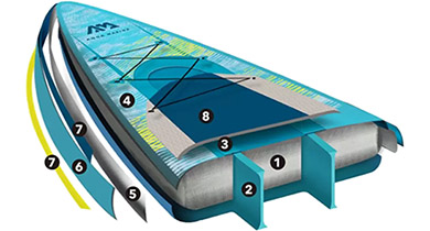 A pluszban hozzáadott légkamrák akár 84 liter plusz űrtartalommal is fokozhatják a deszka lebegési képességét.