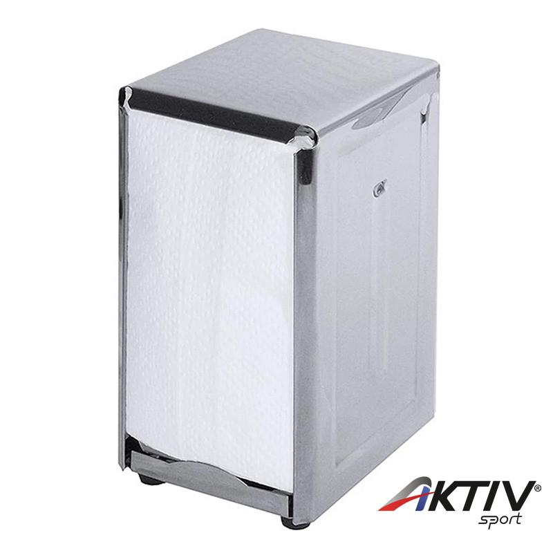 Tükörfényes felülettel, 18/0-ás rozsdamentes acélból készült, gyorséttermi szalvétaadagoló, csúszásmentes gumitalppal, 33 x 33 cm-es 1/8-os hajtogatott szalvétákhoz, méretei, hossza 10 cm, mélysége 12 cm, magassága 19 cm.