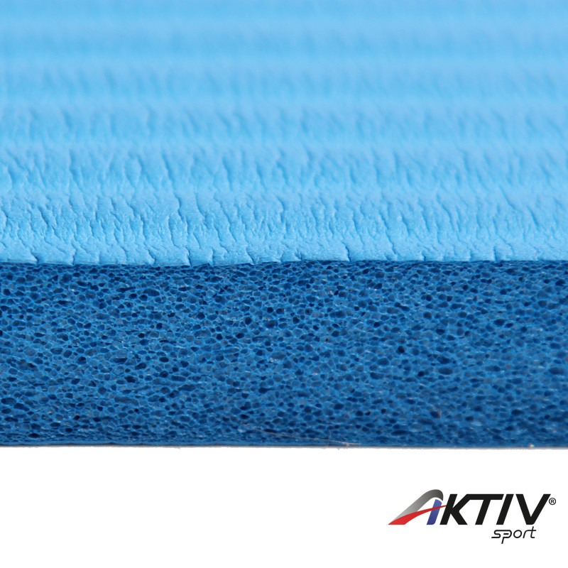 Fitnesz szőnyeg Aktivsport kék színben. A fitness szőnyeg tökéletes segédeszköz talajon való tornázáshoz. A szőnyeg nagyon puha anyagának és vastagságának köszönhetően az edzés alatt kényelmet biztosít. Víznek és izzadságnak is remekül ellenáll. 15 mm vastagságának köszönhetően hosszú távon használható. Almazöld színben is rendelhető.