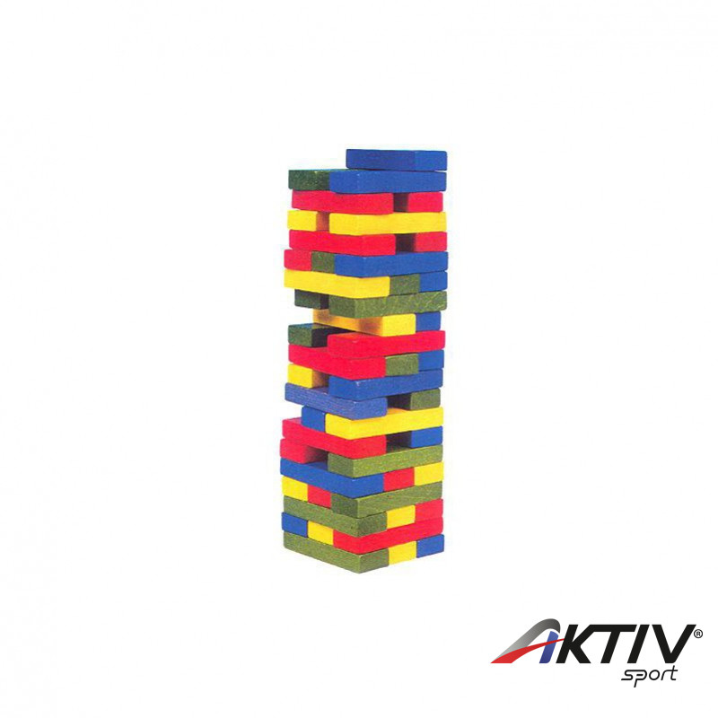 A Jenga játék dobókockás verziója. Mérete: 7×7×24 cm. Építsen tornyot a következõk szerint: helyezzen három Jenga hasábot minden sorba úgy, hogy az egymást követõ sorok 90 fokkal legyenek elforgatva (keresztbe). A játékosok felváltva dobjanak a színdobókockával, s ez alapján húzzanak ki egy színes Jenga darabot és helyezzék a torony tetejére. Az elsõ játékos, akinél a torony leborul, veszített és kiesik. Az összes többi játékos újra építheti a tornyot. Aki utoljára marad, az a gyõztes.