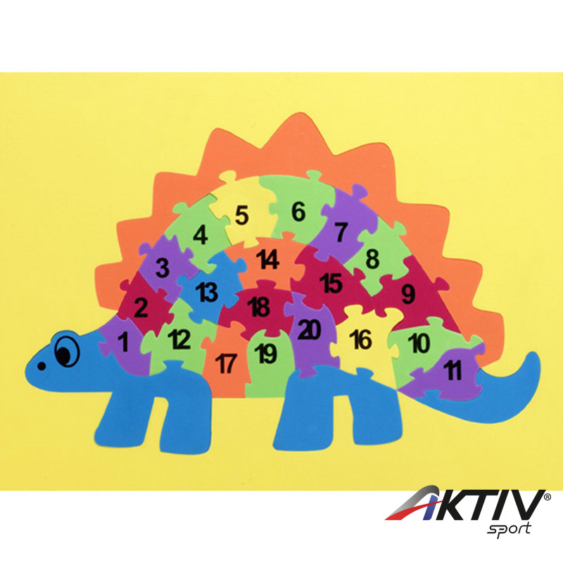 A dinó formájú, 26 db-os, színes puzzle-szőnyeg játékos formában ismerteti meg a gyerekeket a számok világával! A számok egyesével kivehetők, és számsorrend alapján lehet kirakni a dinót. A szőnyeg mérete 61 x 46 cm.