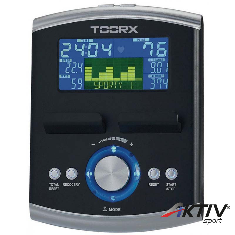 Ezen a praktikus kis szobakerékpár modellen a Toorx legújabb kék háttérvilágítású LCD kijelzője tájékoztat az edzésünk adatairól. (az idő, a távolság, a sebesség, a fordulatszám, a kalória, a Watt érték és a pulzusszám).