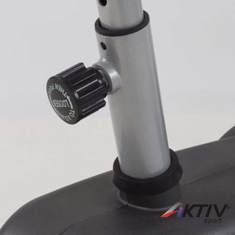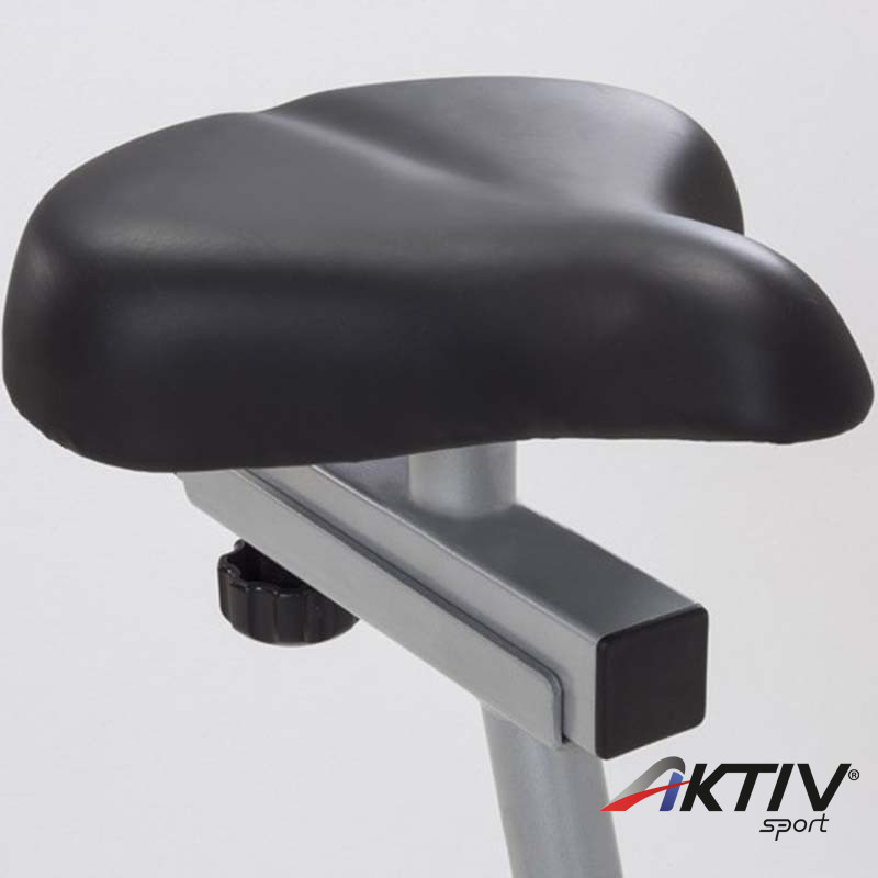 A kényelmes edzéspozició egyszerűen beállítható a szobakerékpár magasságban és távolságban is szabályozható ülésnek köszönhetően.