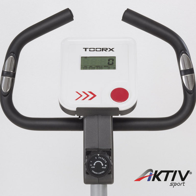 Az edzésadatok egyszerűen leolvashatóak a Toorx BRX Flexi szobakerékpár nagy méretű LCD kijelzőjéről.