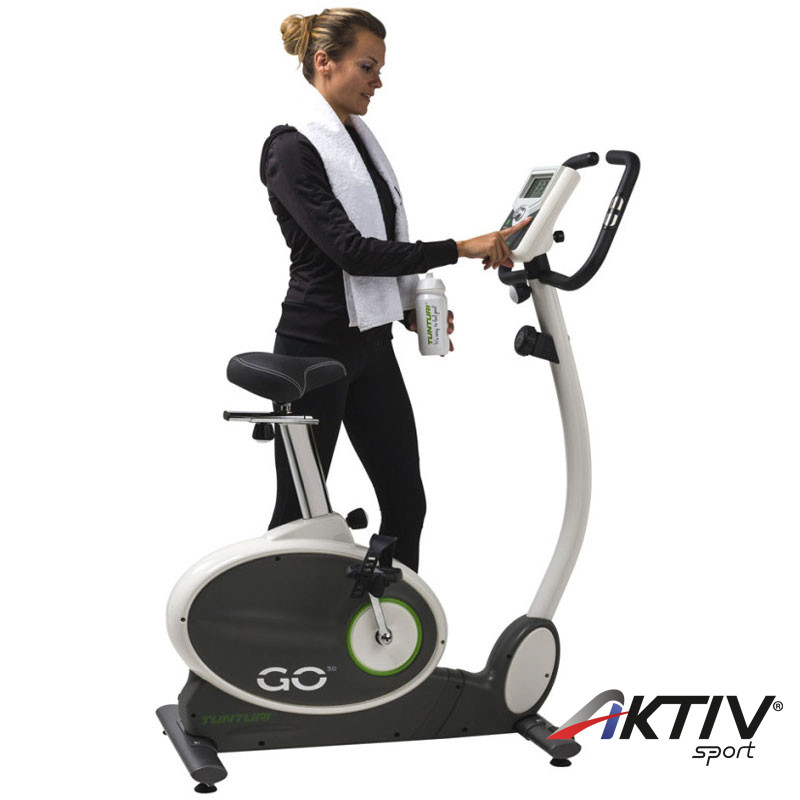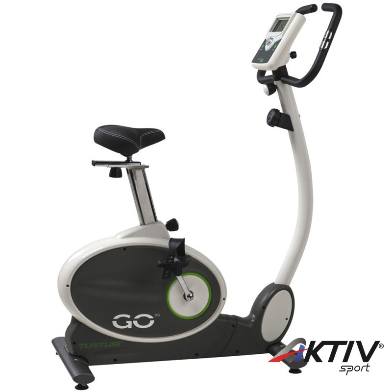A Tunturi GO Bike 30 szobakerékpár könnyen kezelhető, hatékony edzőgép. Egyszerű kezelhetőséggel, modern külsővel és technológiával. Manuális mágnes fékkel rendelkezik. 6 kg-os lendkereke csendes működést biztosít. Monochrome LCD kijelzője mutatja az eltelt időt, a sebességet, a megtett távolságot, az elégetett kalóriák számát és a pulzusszámot. Nyugalmi állapotban a dátumot, időt, és hőmérsékletet jelzi. Ergonomikus, zselés ülése függőlegesen és vízszintesen is állítható, kapaszkodója dönthető. Kényelmes használatot biztosít minden edzéskor. Kézi pulzusmérővel felszerelt, de kiegészíthető mellkas övvel is.